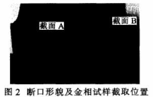 截面A洛氏硬度34.4HRC,截面B洛氏硬度45.4HRC。不同部位截面,硬度相差如此之大,說明汽車板簧卷耳熱處理中,不同部位加熱冷卻不均,熱處理工藝不合理。 |